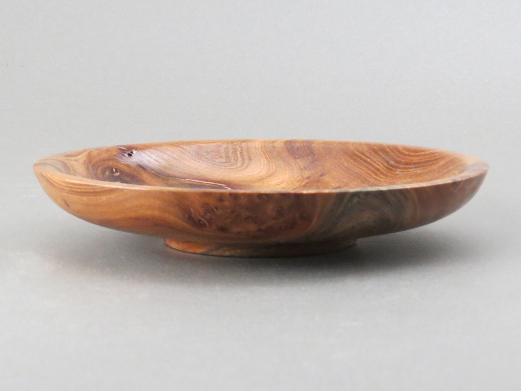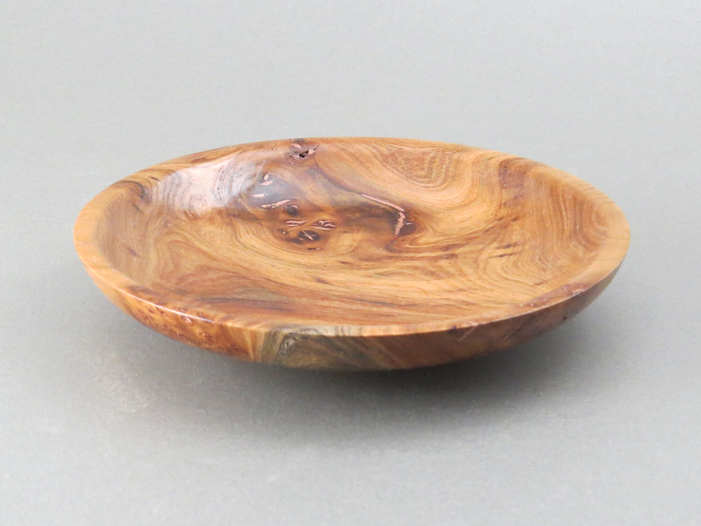 Description: A shallow bowl from local hickory perfect for decoration or small items. Small natural voids were filled with copper accentuating the beauty in the wood.